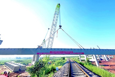 焦平高速新襄段跨禹登鐵路鋼箱梁首節(jié)吊裝