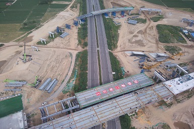 蘭考至沈丘高速公路蘭考至太康段三標(biāo)傅集樞紐互通鋼箱梁工程頂推、吊裝