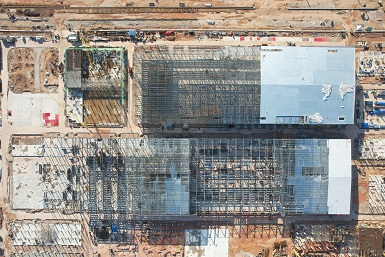 億緯馬來(lái)西亞一期項(xiàng)目施工總承包工程化成車間二標(biāo)段主體鋼結(jié)構(gòu)封頂