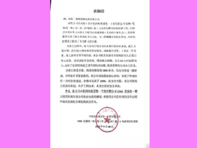 082021.10中鐵四局集團(tuán)第一工程有限公司向我公司發(fā)來(lái)表?yè)P(yáng)信 -