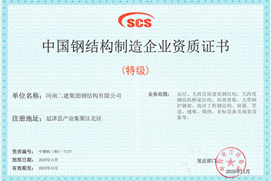 142020.11鋼結(jié)構(gòu)公司成功晉升中國(guó)鋼結(jié)構(gòu)制造業(yè)特級(jí)資質(zhì) -