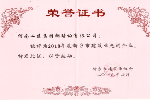 082019.06公司榮獲“2018年度新鄉(xiāng)市建筑業(yè)先進(jìn)企業(yè)” -