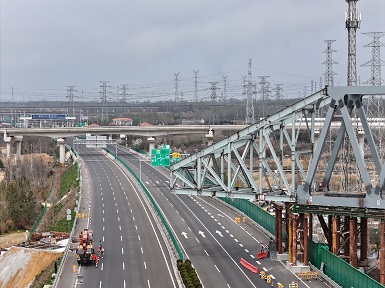 262024.04河南二建集團鋼結(jié)構(gòu)有限公司跨董梁高速特大橋鋼桁梁項目首次頂推施工順利完成 -