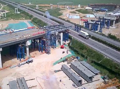 262024.04河南二建集團鋼結(jié)構(gòu)有限公司蘭考至沈丘高速公路蘭考至太康段三標鋼箱梁施工工程順利開始首次頂推施工 -